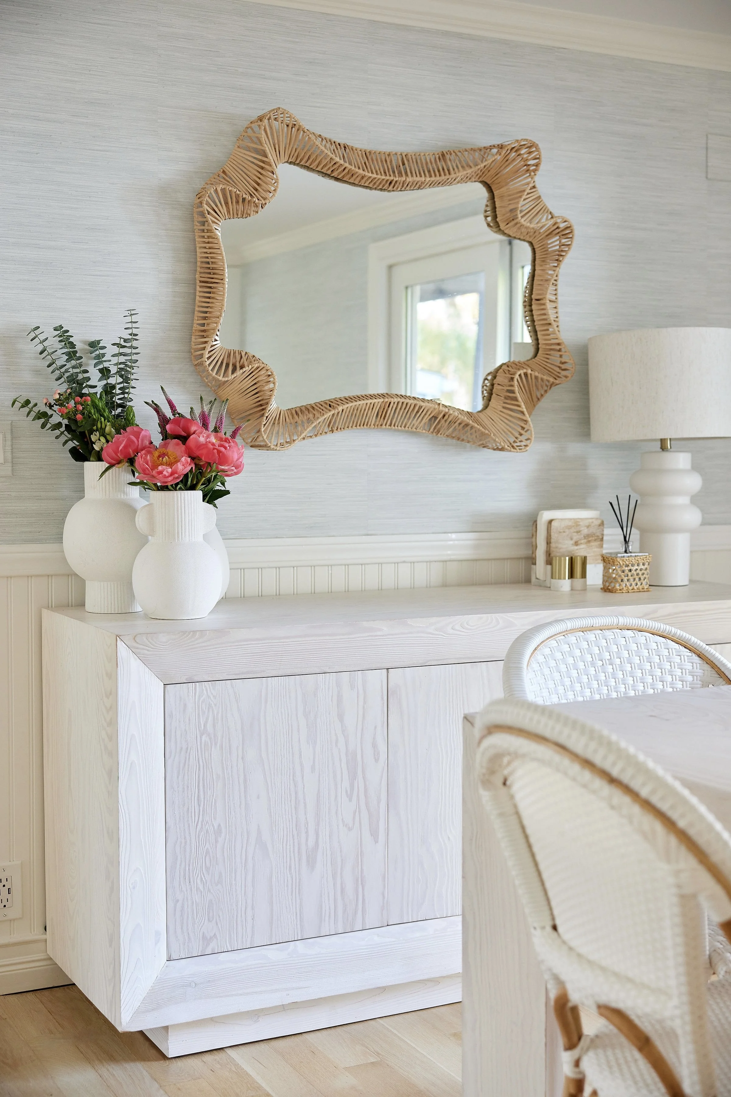 My dining set — including the Serena & Lily Riviera chairs and since-discontinued Crate & Barrel table and buffet— came with us from the last house. These were pieces I already loved and had invested in, so it was important to make them work in the new space.